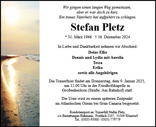 Wir wünschen Dir lieber Stefan eine gute Reise🙏