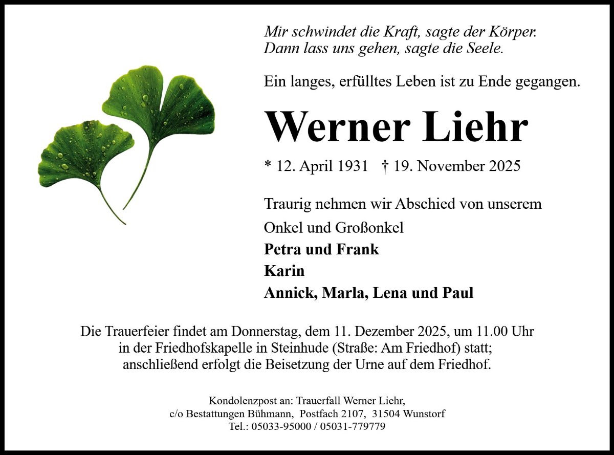 gestorben am 19. November 2025 in Neustadt a. Rbge.