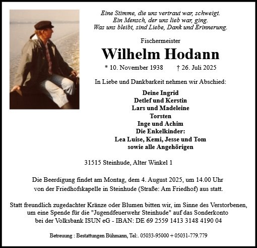 Liebe Familie Hodann, wir möchten unser herzliches Beileid aussprechen.